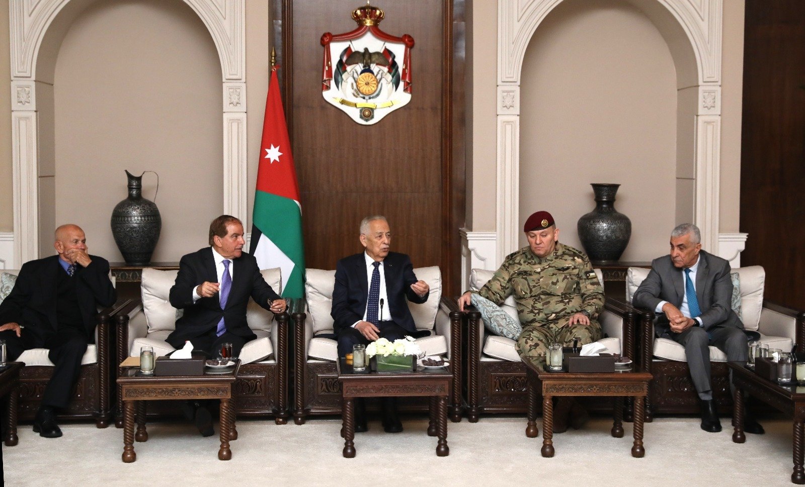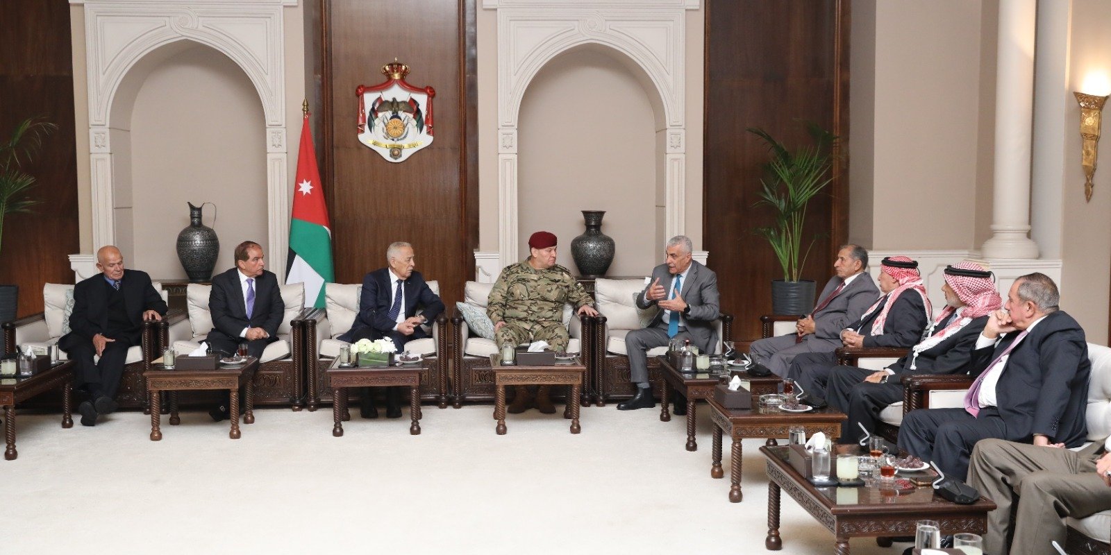 تنفيذا للتوجيه الملكي، التقى رئيس الديوان الملكي الهاشمي يوسف حسن العيسوي، اليوم الثلاثاء، متقاعدين عسكريين خدموا مع جلالة الملك عبدالله الثاني، القائد الأعلى للقوات المسلحة الأردنية – الجيش العربي، في القوات الخاصة، وذلك متابعة للقاء الذي جمعهم مع جلالته في العاشر من الشهر الحالي.