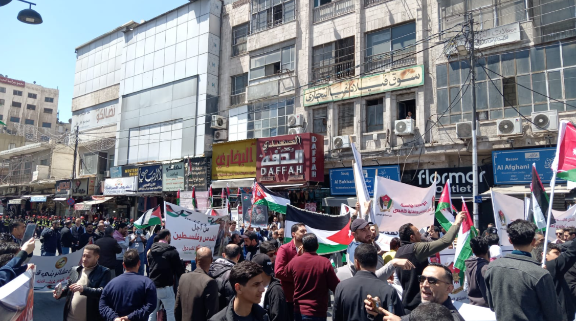 بدأت جموع المواطنين، إلى جانب الفعاليات الشعبية والحزبية والنقابية، بالتوافد للمشاركة في الوقفة والمسيرة الوطنية التي ستنطلق من أمام المسجد الحسيني وسط العاصمة عمّان، عقب صلاة الجمعة اليوم.