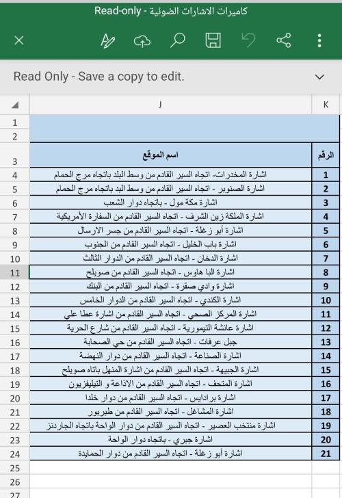 وهذه قائمة بمواقع الأنظمة التي سيتم تشغيلها ضمن حدود أمانة عمّان: